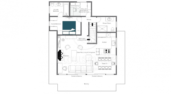 - Верхний уровень включает в себя гостиную, обеденную зону, главную спальню, рабочую зону и душевую комнату с гостевой уборной. Сидя у камина в гостиной открытой планировки, Вы сможете любоваться беспрепятственным видом на спуски Вербье. Обеденная зона отделена от кухни барной стойкой. Есть выход на широкий балкон с гамаком и наружной софой. В главной спальне имеется телевизор, к ней прилегает ванная комната. На мезонине предусмотрена еще одна спальня с двуспальной кроватью.