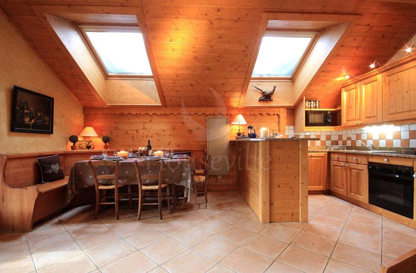 Эти уютные апартаменты (4 спальни) находятся в старом районе Мерибеля, рядом со скоростным кресельным подъемником «Telesiege du Golf», который соединен с горным аэропортом Мерибеля и лыжной зоной Трех долин, что позволит избежать стояния в очереди на главных подъемниках курорта. Пропуски можно купить у самого подъемника, избегая каких-либо задержек, а трасса, ведущая назад в город, доступна на протяжении целого сезона благодаря снежным пушкам. В Мерибель-Вилляж есть булочная, супермаркет, магазин снаряжения, рестораны и один из лучших apers-ski баров - «Lodge du Village». Апартаменты могут вместить до 8 гостей в 3 спальнях с индивидуальной меблировкой и прилегающими ванными комнатами. Здесь есть 1 спальня с двуспальной кроватью и обращенным на запад балконом, 1 спальня с 2 односпальными кроватями и 1 спальня с двухъярусной кроватью и большой приватной ванной комнатой. Гостям бесплатно предоставляется постельное белье, полотенца, средства для купания и фены. Просторная зона открытой планировки включает в себя гостиную, столовую и кухню. Здесь есть большой камин, старинная мебель и обращенный на юг балкон с обширными видами на долину. Над гостиной расположен мезонин, который служит уединенной комнатой для чтения или просмотра телевизора. Мезонин оборудован спутниковым и цифровым телевидением, DVD-проигрывателем, pod и музыкальной системой. В главной спальне установлено джакузи. В апартаментах есть сауна, они оснащены Wi-Fi, стиральной машиной и сушилкой. Имеется подземная парковка, а также отапливаемое помещение для снаряжения и обуви. За дополнительную плату предоставляется телефон, массаж и услуги прачечной.