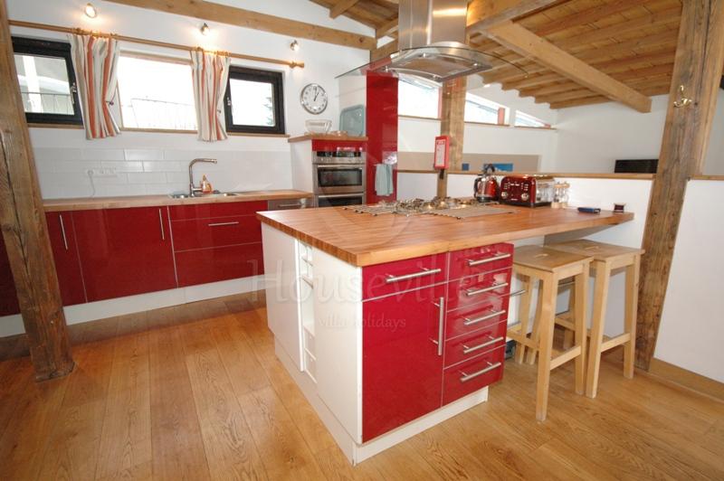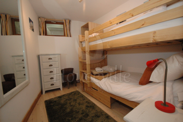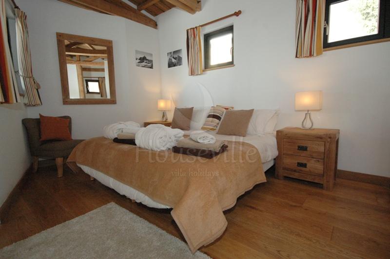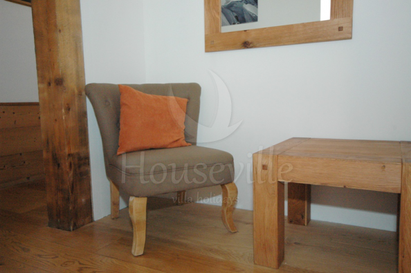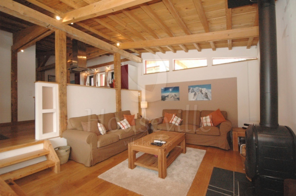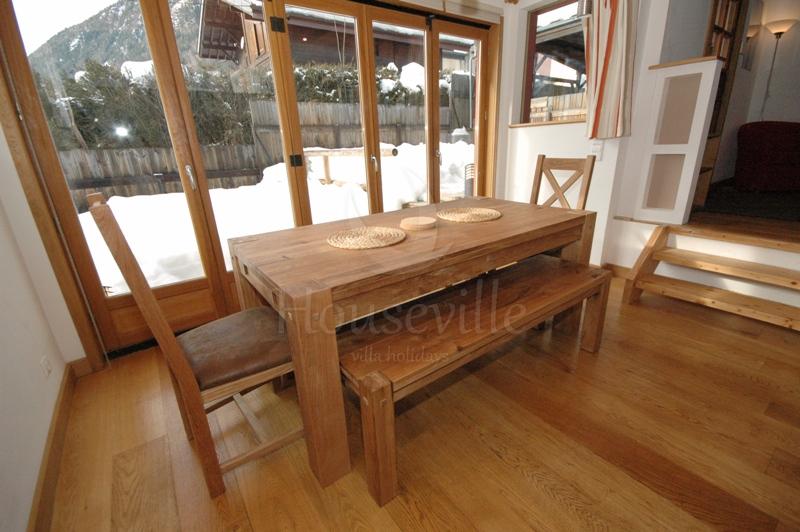 Это уютное шале с 4 спальнями расположено в популярном районе Ле Пеклес в Шамони, на обращенном к югу склоне с красивыми видами на Монблан и ледники. Здание недавно было реставрировано, интерьеры приобрели стильные современные черты. Здание занимает 2 уровня и включает в себя гостиную зону открытой планировки с комфортными софами и камином, и современную хорошо оборудованную просторную кухню. Ступеньки ведут вниз к обеденному столу, который установлен напротив стеклянной двери, ведущей на террасу и в сад. Также на этом уровне расположена спальня с двуспальной кроватью, главная ванная комната и главная спальня. В последней можно установить 1 двуспальную кровать или 2 односпальные кровати. К спальне прилегает душевая комната. На нижний уровень ведет лестница. Там находятся 2 остальные спальни, в одной из которых есть двуспальная/2 односпальные кровати, а во второй имеется двухъярусная кровать. Здесь также расположена рабочая зона со стиральной и сушильной машиной. Стильные интерьеры сочетают в себе современный декор, уют и традиционные элементы (деревянные балки на потолках). Из гостиной зоны большие раздвижные двери ведут на солнечную, обращенную на юго-запад террасу и в сад с горячей купелью. Отсюда видны ледники Ле Боссон и Таконназ и горный хребет Монблан. Имеется крытая парковка для одного автомобиля и несколько парковочных мест на улице напротив шале. ЕСА 0103 находится в популярном районе Ле Пеклес, на солнечной стороне Долины Шамони, на западе от центра города, в 10 минутах ходьбы (1000 м) к улице Паккард, главной торговой улицы Шамони. Ближайший супермаркет «Casino» расположен в 10 минутах ходьбы (на западе от центра). В 500 метрах находится бар/ресторан «le Vert» и «Vagabond» (700 метров). Для доступа к лыжным склонам лучше иметь автомобиль, но на переулке у дороги Route des Gaillands можно сесть на автобус. Можно также сесть на поезд на станции Мусу (Moussoux).