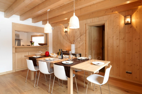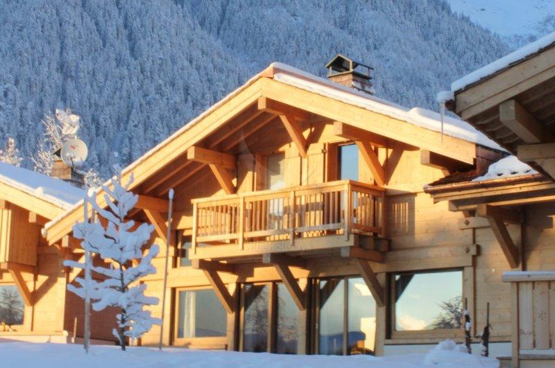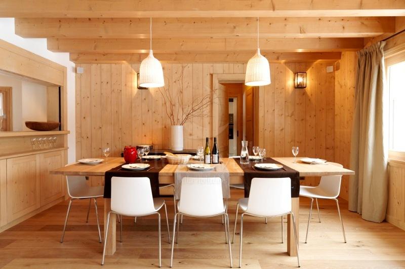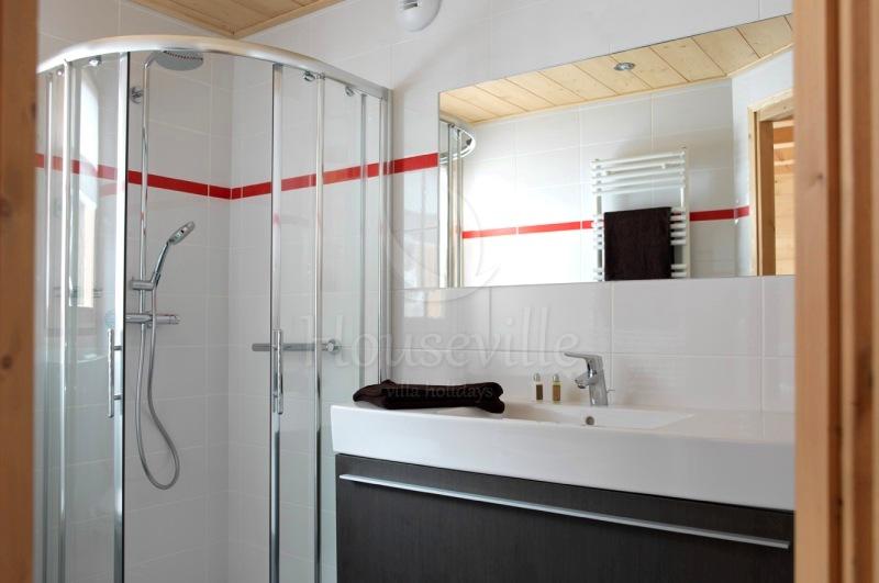 Это красивое шале с 3 спальнями занимает 3 уровня. Садовый уровень включает в себя гостиную зону, которая состоит из лаунжа и обеденной зоны, между которыми установлен современный камин (360 градусов). Здесь есть WI-FI и телевизор со спутниковыми каналами (британскими и французскими). Современная полностью оборудованная кухня соединена с обеденной зоной барной стойкой. Обеденный стол рассчитан на 8 персон. Раздвижные стеклянные двери ведут на обращенную к югу террасу с красивыми видами на Монблан и пики Шамони. Также этот уровень включает в себя спальню с двуспальной кроватью или 2 односпальными кроватями, с прилегающим душем и отдельным туалетом. На верхнем уровне находится 2 спальни, обе с прилегающими ванными комнатами. В обеих спальнях установлена двуспальная кровать и дополнительная односпальная кровать. Таким образом, шале может вместить 8 гостей. Из одной из спален и лестничной площадки можно выйти на обращенный на юг балкон. На нижнем уровне находится рабочее помещение со стиральной и сушильной машиной, а также помещение для хранения лыж и ботинок. Дверь отсюда ведет в приватный гараж. Декор сочетает в себе современные и традиционные элементы: паркет сделан из старого дуба и ели, а комнаты обставлены дизайнерской мебелью ручной работы. ECA 0108 находится в комплексе из 4 шале, которые можно арендовать по отдельности, парами и все вместе. Шале ECA 0111 и ECA 0109, а также шале ECA 0108 и ECA 0110 соединены между собой закрывающимся проездом. Во все 4 шале можно пройти через парковочный уровень. Эти 4 шале могут вместить до 32 человек. Комплекс находится в эксклюзивном районе Плен де Праз, что на востоке от центра города. За 10 минут можно дойти пешком к городу Ле Праз, где есть продуктовый магазин, рестораны и бары. Главные торговые улицы Шамони расположены приблизительно в 20 минутах ходьбы/5 минутах езды. Фуникулер «Флежер»(Flégère) находится в 10 минутах ходьбы/2 минутах езды от шале. В 500 метрах от шале, возле трассы Route du Bouchet, расположена ближайшая автобусная остановка.