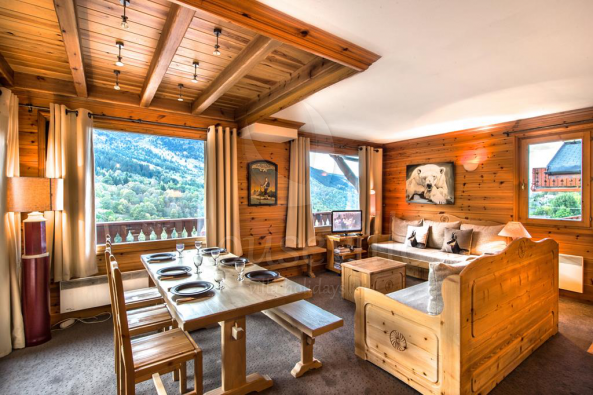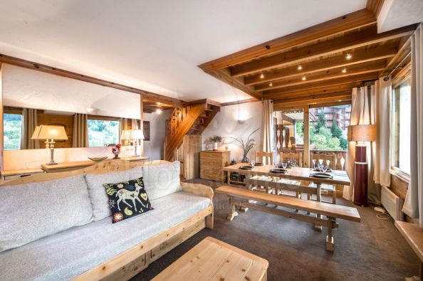 Эти красивые двухуровневые апартаменты (52 кв. м) с 3 спальнями (6 человек) расположены в центре Мерибеля. Основной уровень включает в себя гостиную и обеденную зону с телевизором, террасу, обращенную на юго-восток, кухню, душевую и туалет. На втором уровне находится спальня №1 с двуспальной кроватью, а в спальне №2 и №3 установлены по 2 односпальные кровати. Также имеется ванная комната и туалет.