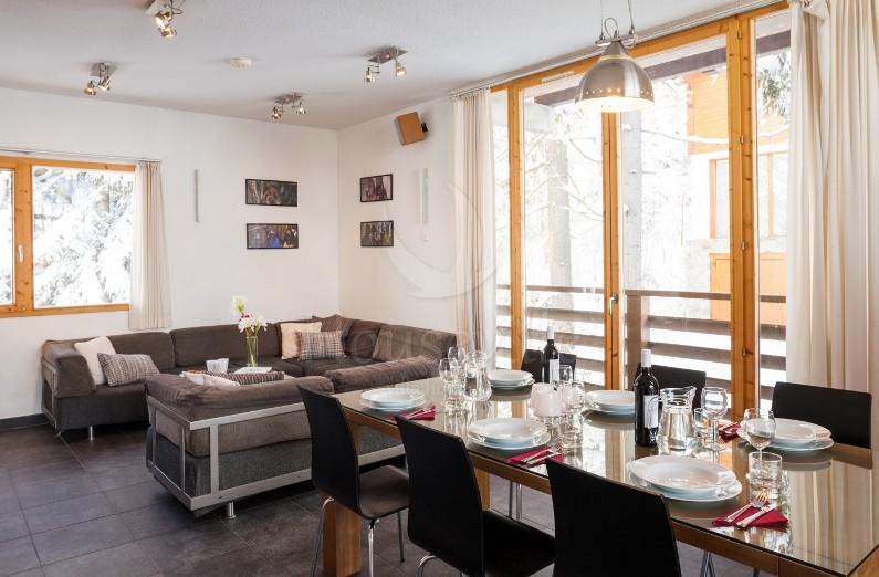 Это ski-in/ski-out шале с 3 спальнями расположено возле трассы Moretta Blanche в Ла-Танье и обращено к склону. Из комнаты для снаряжения можно выйти прямо на лыжную трассу. В 10 метрах расположен главный подъемник. В шале имеется просторная и комфортная гостиная зона открытой планировки, выполненная в современном стиле и оборудованная камином. К спальням прилегают душевые комнаты. Вечером можно отдохнуть на большой террасе или в сауне, которая вместе с комнатой для снаряжения находится в общем пользовании для гостей соседнего шале ECA 0149. Эти шале имеют отдельные входы и приватные балконы, но представляют собой одно здание, которое может арендовать группа из 12/13 человек.