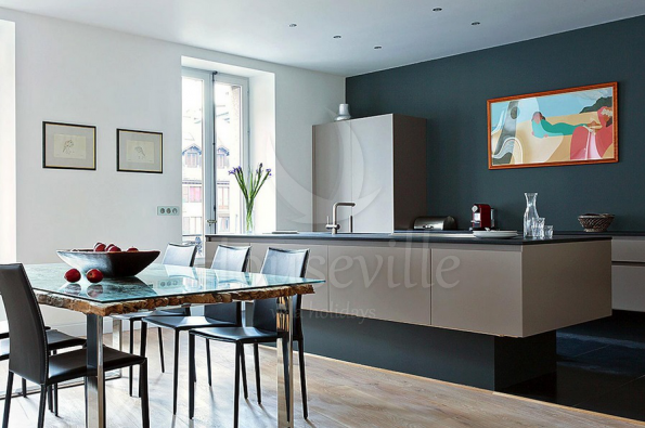 - Большая гостиная, столовая и лаунж-зона с балконами, кухня открытой планировки;