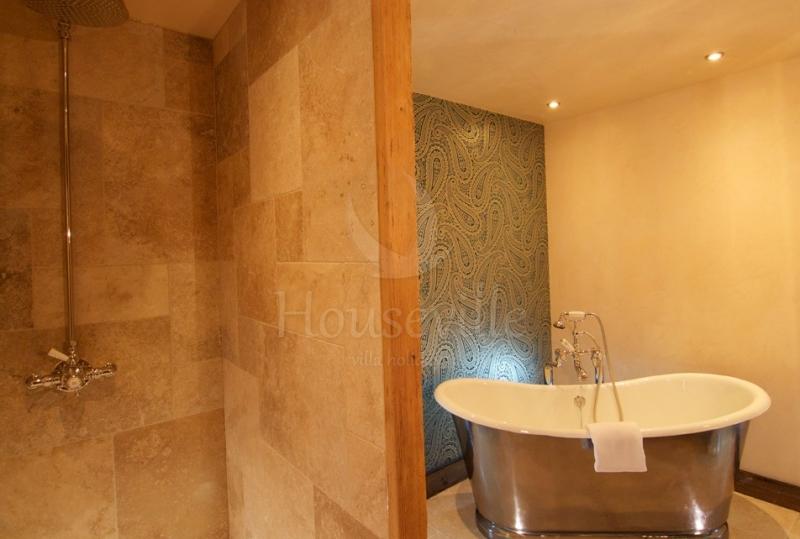 - Верхний уровень: большая гостиная открытой планировки, камин, балкон с роскошным видом, обеденный стол на 12 персон, полностью оборудованная кухня, Спальня №5, прилегающая ванная комната, терраса с джакузи, барбекю и лаунжем.