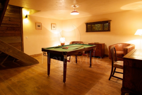 - Шале также включает в себя игровую комнату/библиотеку, комнату для массажа, медиа-комнату. Имеется рабочее помещение с бойлером.
