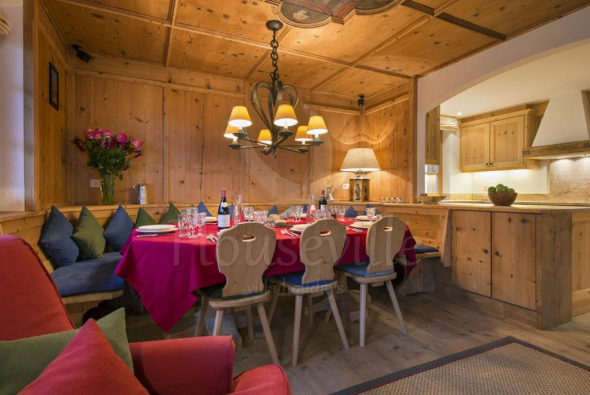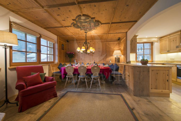 Эти симпатичные апартаменты с 5 спальнями занимают средний уровень шале, которое находится в пределах короткой прогулки от подъемной станции Нассерейн. Здание было построено в 2012 году и выполнено в соответствии с высочайшими стандартами качества. В отделке широко применялось дерево, а также несколько видов натурального камня. Интерьеры в тирольском стиле 18-го века обставлены стильной мебелью. Деревянный потолок в обеденной зоне украшен росписью в стиле эпохи Ренессанса. В 5 спальнях сможет комфортно разместиться 11 человек. Имеется лестница и лифт. Изо всех спален и гостиной зоны можно выйти на просторные солнечные балконы, обращенные на юг. Прекрасная гостиная и обеденная зона открытой планировки с традиционным камином в австрийском стиле расположены в западной части апартаментов. Хорошо оборудованная кухня открытой планировки обращена к столовой, обеденный стол рассчитан на 12 человек. Главная спальня с двуспальной кроватью располагает прилегающей ванной комнатой. В 2 спальнях можно установить 2 односпальные/двуспальную кровать. Спальня №4 располагает 2 односпальными кроватями и прилегающей душевой комнатой. В спальне №5 установлена двухъярусная кровать для взрослых и 1 односпальная кровать, имеется прилегающая ванная комната. Все спальни располагают балконами. В коридоре предусмотрен дополнительный туалет. Красиво обставленная ТВ-комната отлично подойдет для детских игр. Имеется также общая лыжная комната и комната для просушки обуви. Кроме того, гости имеют доступ к общему хамаму на нижнем уровне. Предусмотрена парковка для 2 автомобилей. Шале расположено в районе Нассерейн, всего в 3 минутах ходьбы от подъемников и в 8-10 минутах ходьбы от центра курорта. При хорошем снежном покрове возможен ski-out, а также ski-in для экспертов и лыжников среднего уровня подготовки.