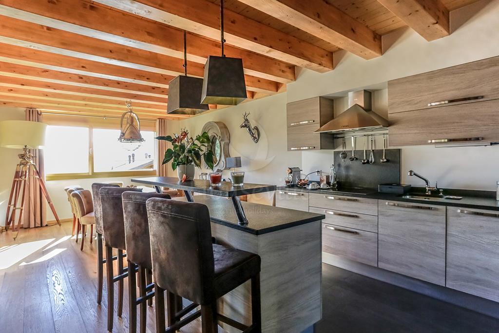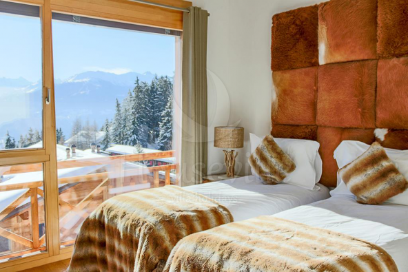 Это ski-in/ski-out шале с 5 спальнями выполнено в загородном стиле и наполнено уникальной альпийской атмосферой. Расположение в окружении горнолыжных трасс, обеспечивает приватный спокойный отдых. В то же время центр курорта находится всего в 5 минутах езды. Здание площадью 250 кв. м. занимает 3 уровня и вмещает в себя гостиную зону, столовую и кухню. Все материалы, оборудование и меблировка в современном стиле были тщательно подобраны для того, чтобы создать подходящую для отдыха атмосферу. Так отделка выполнена из натурального камня и местного дерева. Шале отлично подходит для большой группы отдыхающих или 2 семей, которые смогут разместиться в 5 спальнях с прилегающими ванными комнатами. Имеется приватное спа с большим джакузи, сухой сауной и душем с подсветкой. Гости могут воспользоваться современным конференц-залом на 50 человек. Здесь можно отдыхать круглый год – зимой любоваться видами заснеженных склонов, летом – зеленью и цветущей природой.