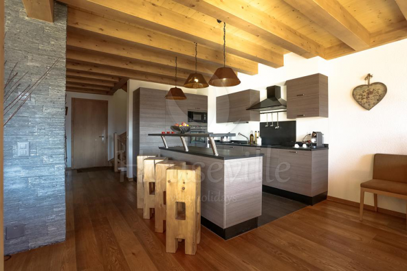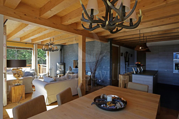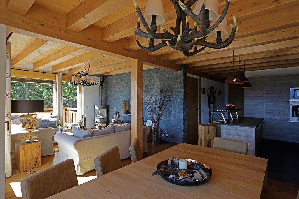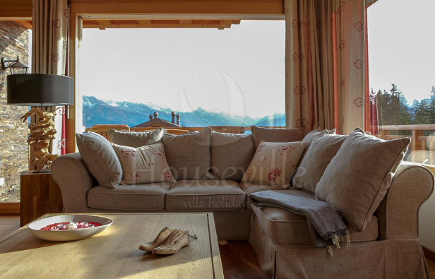 Это ski-in/ski-out шале с 5 спальнями выполнено в загородном стиле и наполнено уникальной альпийской атмосферой. Расположение в окружении горнолыжных трасс, обеспечивает приватный спокойный отдых. В то же время центр курорта находится всего в 5 минутах езды. Здание площадью 250 кв. м. занимает 3 уровня. Все материалы, оборудование и меблировка в современном стиле были тщательно подобраны для того, чтобы создать подходящую для отдыха атмосферу. Так отделка выполнена из натурального камня и местного дерева. Гости могут воспользоваться современным конференц-залом на 50 человек. Здесь можно отдыхать круглый год – зимой любоваться видами склонов, летом – природой города. Атмосфера гор располагает к построению новых планов и вдохновляет на новые свершения!