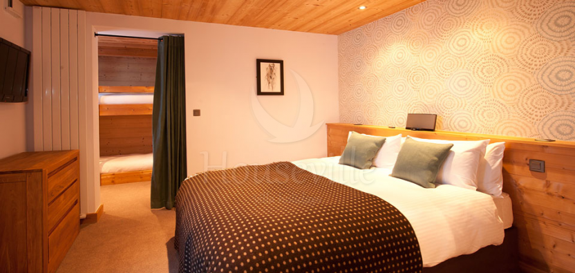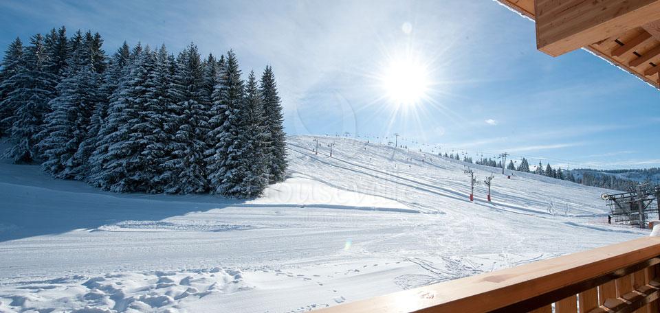 Это комфортное ski-in/ski-out шале с 9 спальнями расположено на высоте 1530 метров прямо на лыжной трассе в главной лыжной зоне Ле-Же, Ле Шаван (Les Chavannes), рядом со всеми подъемниками. К террасе шале можно подъехать на лыжах по зеленым, красным и голубым трассам, которые пролегают через лес. Шале построено в 2011 году. Рядом с трассой расположен бар, лаунж-терраса и ресторан для ленчей, открытый для посещения в течение дня. Гости шале имеют эксклюзивное право пользоваться 2 небольшими приватными лаунжами с камином и телевизором. Шеф-повар предоставляет «гибкое» меню с выбором блюд на ужин. Интерьеры выполнены в современном стиле. Шесть спален из 9 обслуживаются лифтом, включая 5 главных спален. Некоторые спальни располагают балконами или террасами, 3 спальни имеют приватные наружные горячие купели. На верхнем уровне находится 3 спальни с индивидуальными лаунж-зонами. Во всех спальнях установлено телевидение «Freesat HD» и аудио-станции «BOSE». На основном уровне расположена спа-зона с сауной и массажной комнатой, а также доступом к наружной горячей купели. Для детей предусмотрена игровая комната, имеется игровая приставка Wii и стерилизатор детских бутылочек. Вечером игровую комнату можно использовать в качестве домашнего кинотеатра с HD проектором, экраном (92 дюйма) и аудиосистемой. Это шале отлично подходит для семейного отдыха с маленькими детьми и детьми старшего возраста. Отдыхать здесь можно на протяжении всего сезона.