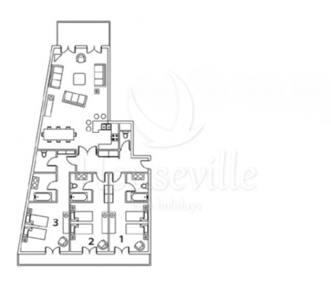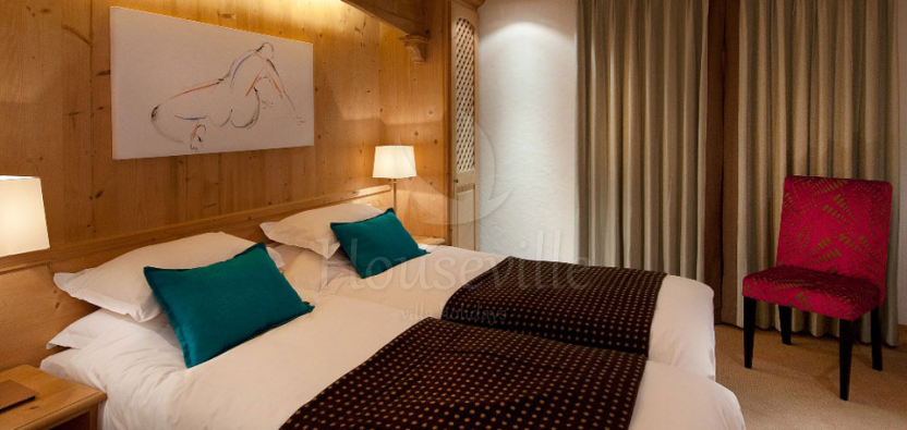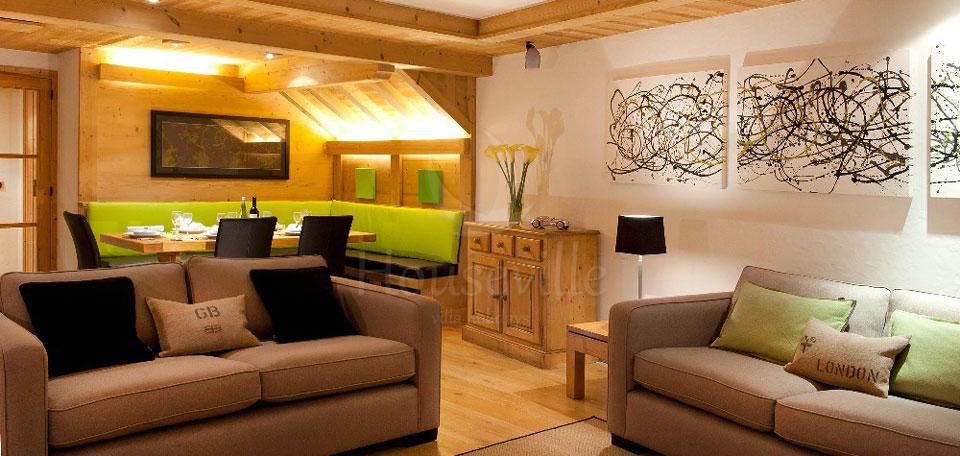 Эти изысканные апартаменты с 3 спальнями располагают приватной гостиной и обеденной зоной. Гости обслуживаются управляющим. В спальне №1 установлено 2 односпальные кровати, есть место для детской кроватки. Имеется балкон и прилегающая ванная комната с раковиной и туалетом. Остальные 2 спальни спланированы также. Это хороший вариант для семейного отдыха с детьми. Гостям предоставляется информационная поддержка и консьерж-сервис. С главной улицы раздвижные стеклянные двери ведут в симпатичную лаунж-зону с камином, большим телевизором с детскими и спортивными каналами SKY, игровой приставкой Nintendo Wii, бильярдом, бесплатным доступом к интернету, кофе-баром и пивом. Имеется лифт. Шале расположено на главной улице, в самом центре города, всего в 250 метрах от подъемников и склонов для начинающих лыжников.