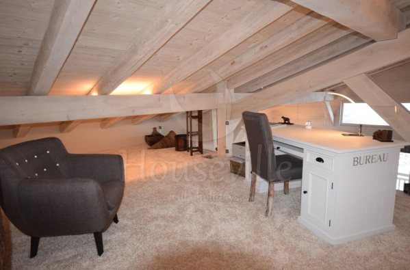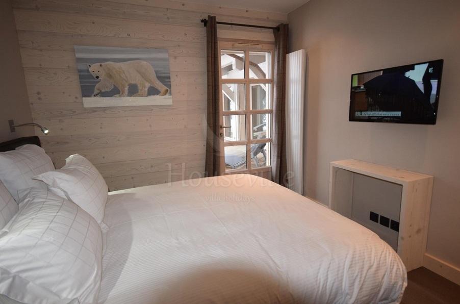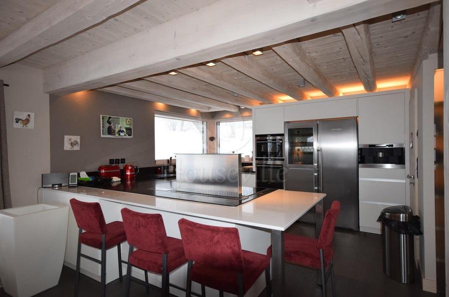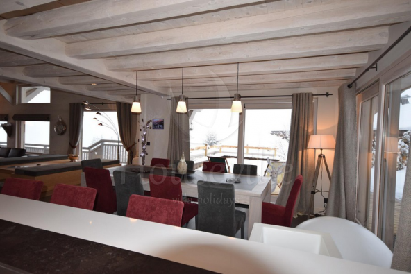 Это современное ski-in шале с 5 спальнями отделано деревом в серых и белых тонах. Здание расположено в сердце лыжной зоны Комблу (Combloux), а именно в 2 минутах езды от подъемников «La Cry». Построенное в этом году и отделанное в мягких нейтральных тонах, шале наполнено элегантностью. Гости смогут комфортно отдохнуть возле камина и, укутавшись в плед, любоваться Монбланом на террасе. После катания на лыжах можно набраться сил в фитнес-зоне с внутренним бассейном, который оснащен подогревом и отделан серым камнем. Шале занимает 3 уровня и рассчитано на 10 гостей.