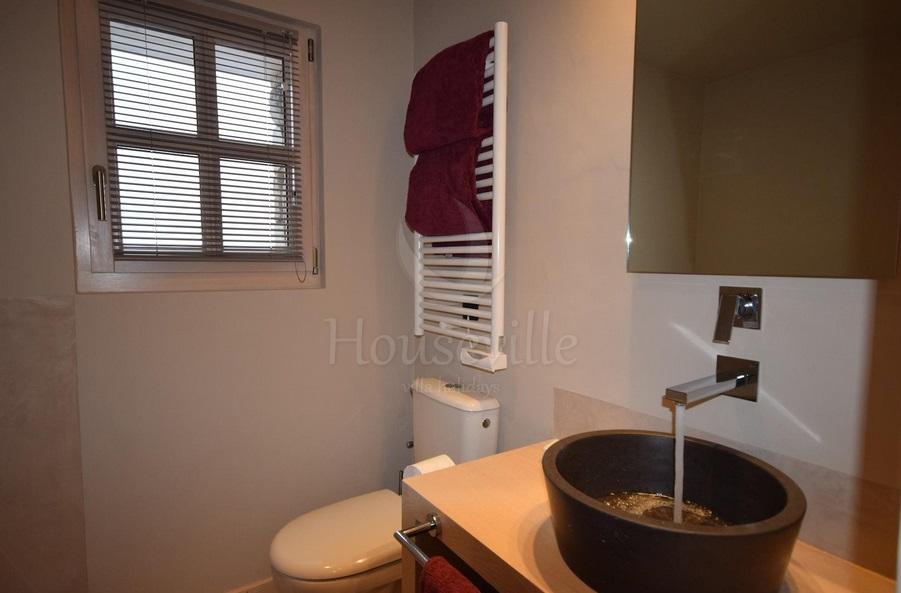 - Садовый уровень: 3 спальни с прилегающими ванными комнатами, 1 спальня с двуспальной кроватью и ванной комнатой, бассейн, хамам, терраса прачечная, гараж.