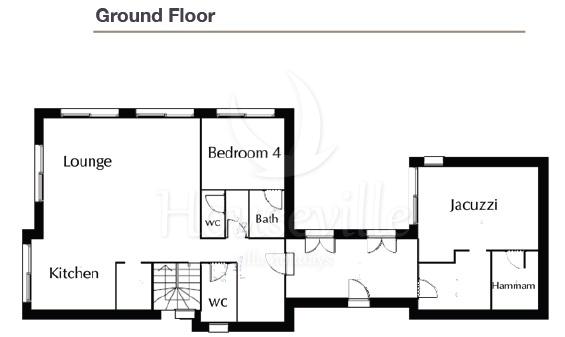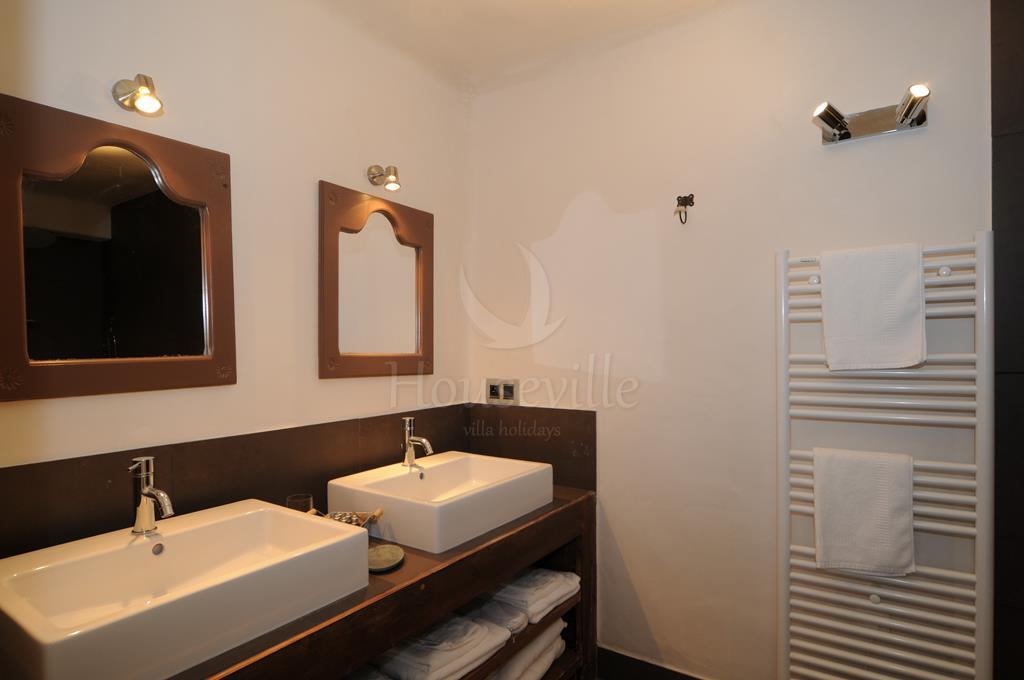 - Спальня №5: 2 односпальные/двуспальная кровать (28 кв. м) + 1 односпальная кровать, прилегающая ванная комната с душем, терраса;