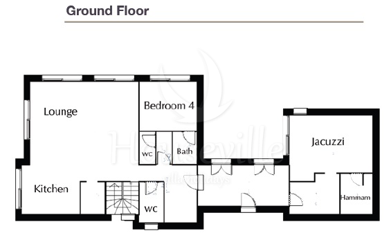 - Спальня №4: двуспальная кровать (22 кв. м), телевизор, терраса, ванная комната с душем;