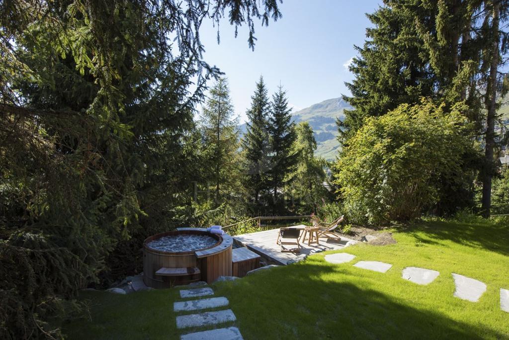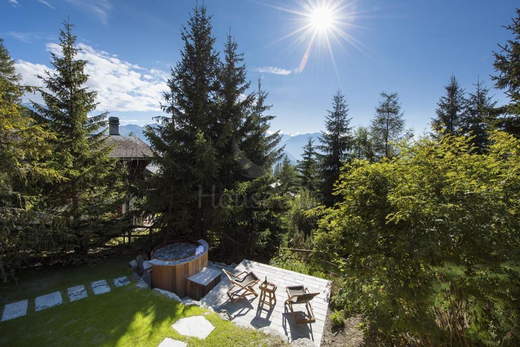 Это новое шале с 4 спальнями расположено в эксклюзивном районе Вербье, в местности с захватывающим видом на окружающие горы. Здание занимает 3 уровня, а в 4 спальнях может разместиться 8 гостей. В шале можно войти через гараж на верхнем уровне. Далее находится холл, из которого можно пройти к двум спальням с 2 односпальными/1 двуспальной кроватью. Эти просторные спальни располагают прилегающими ванными комнатами, телевизором и балконом. Этот уровень также вмещает в себя комнату для снаряжения и гостевой туалет. Наполненная светом гостиная/обеденная зона открытой планировки обустроена на втором уровне и отделана с альпийским шиком. Французские окна от пола до потолка наполняют комнату светом. Отсюда можно выйти на большую террасу, которая обращена к саду и приватной горячей купели. Изысканная гостиная наполнена уютом, хотя достаточно просторна. Имеется большой камин. К обеденной зоне прилегает кухня, где для максимальной приватности гостей предусмотрен отдельный вход для персонала. Также на этом уровне есть кино-комната с Apple TV. В лаунже с красивым дизайном гости смогут расслабиться, наслаждаясь просмотром фильмов. На основном уровне расположено 2 спальни с 2 односпальными/1 двуспальной кроватью. Одна из них имеет прилегающую ванную комнату, а вторая – душевую. Обе спальни располагают французскими окнами, которые открываются в сад с горячей купелью из кедрового дерева. В просторном саду достаточно места для детских игр, взрослые же смогут понежиться на солнце и отдохнуть на террасе с бокалом шампанского. Гостям обычно предоставляются услуги курортного водителя с 08:30 до 01:00. Эти услуги предусмотрены как в пакете «Делюкс», так и в пакете «Классик». Гости могут выбрать один из пакетов обслуживания.