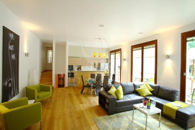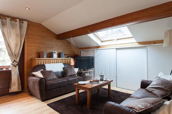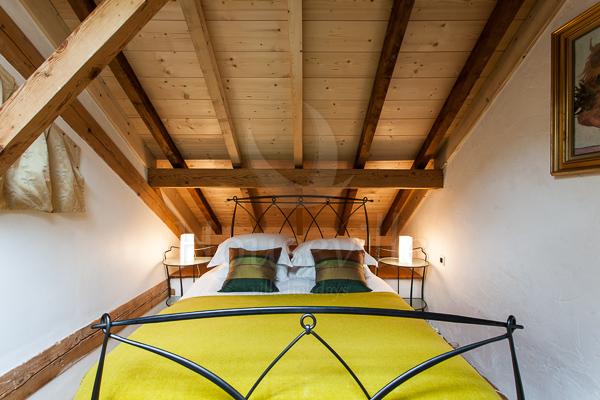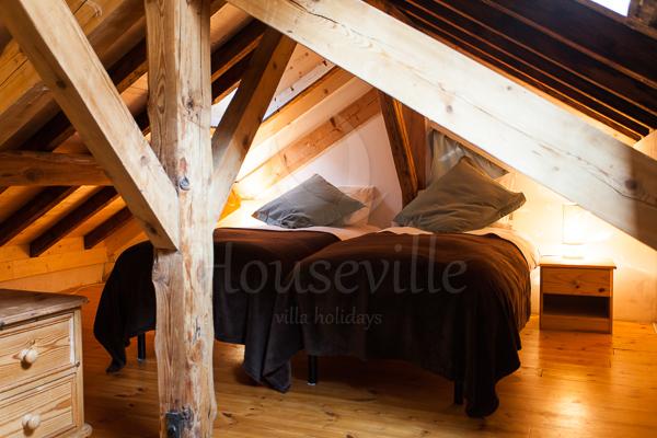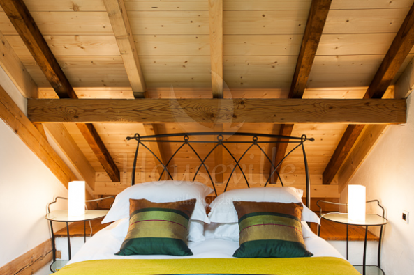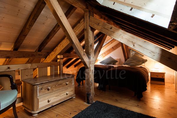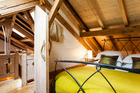 1) Лофт (4 спальни для 8 гостей + 4 ванные комнаты) занимает верхний уровень флигеля, имеет площадь 160 кв. м и располагает потолком с деревянными балками и полами из дерева. Лофт стильно меблирован и оснащен всем необходимым для современного отдыха – имеется телевизор, док-станция для IPhone 6/IPad, DVD-проигрыватель и бесплатный Wi-Fi. Полностью оборудованная кухня включает в себя просторную барную зону и располагает большой плитой (90 см), микроволновой печью, посудомоечной и стиральной/сушильной машиной. В 2 спальнях установлены двуспальные кровати, а еще в двух есть по 2 односпальные кровати. Все 4 ванные комнаты прилегают к спальням. Апартаменты рассчитаны максимум на 8 человек. По запросу предоставляются детские кроватки (тип «для путешествий») и высокие стульчики для кормления. Пять окон лофта обращены к Монблану, что позволит любоваться видом.