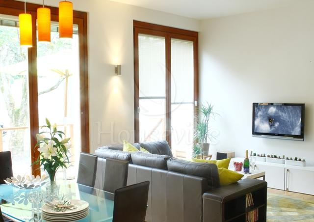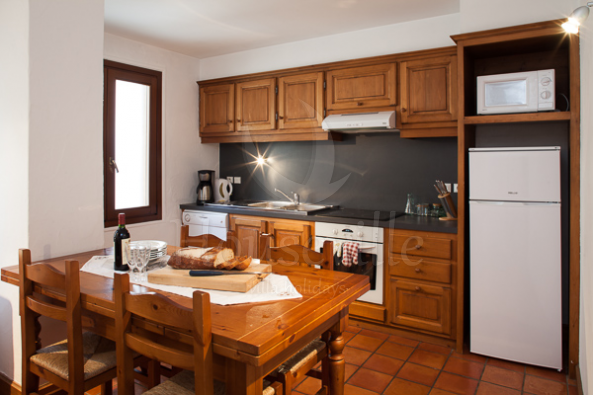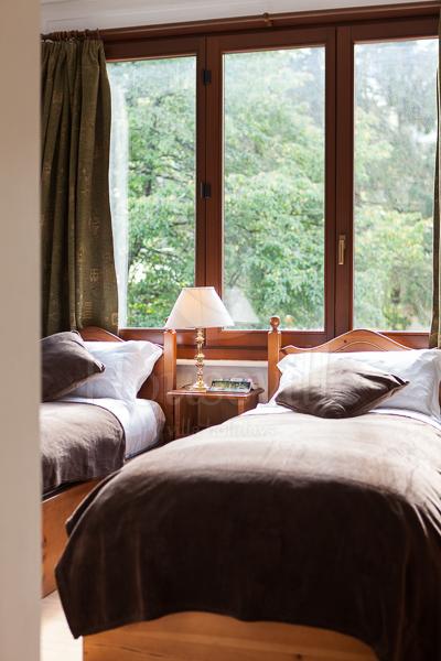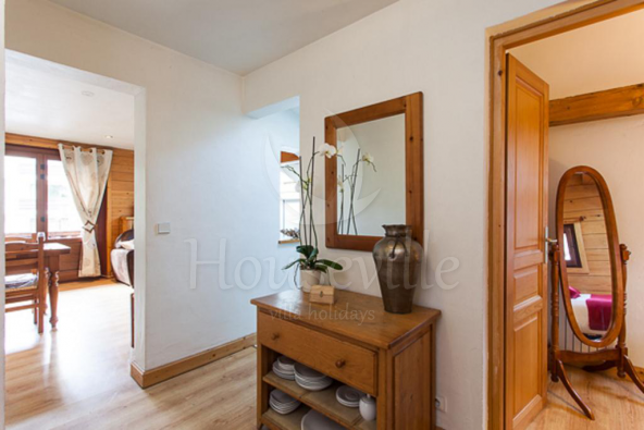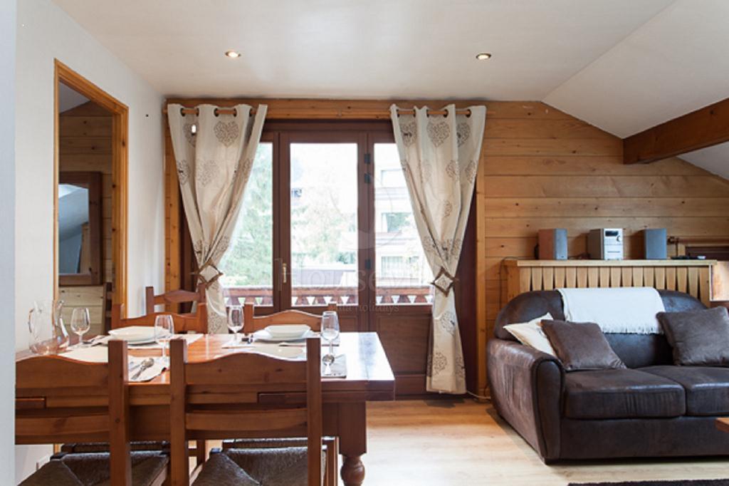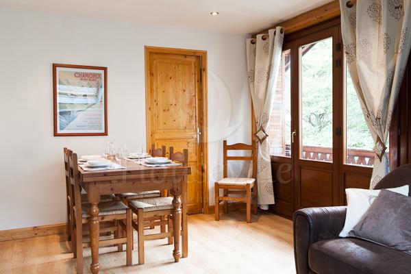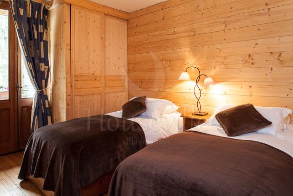 3) Апартаменты №2 (2 спальни для 4 гостей +2 ванные комнаты) – обустроены на втором уровне основного здания, имеют площадь 75 кв. м. Декор выполнен в соответствии с высокими стандартами. В гостиной установлен камин со стеклянным заграждением, телевизор, стереосистема, DVD-проигрыватель, а также есть бесплатный Wi-Fi. Из гостиной можно выйти на приватную террасу с видом на Монблан. Имеется 2 спальни – одна с двуспальной кроватью и одна с 2 односпальными кроватями, можно установить двухъярусные кровати для 4 гостей. Спальня№1 располагает прилегающей душевой комнатой, а спальня №2 имеет отдельную ванную комнату. Апартаменты рассчитаны максимум на 6 человек. По запросу предоставляются детские кроватки (тип «для путешествий») и высокие стульчики для кормления. На кухне предусмотрена вся современная техника, включая стиральную и посудомоечную машину, а также микроволновую печь.
