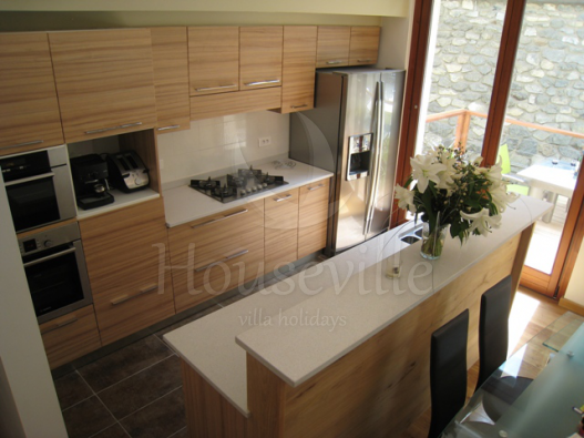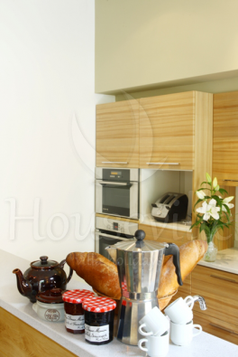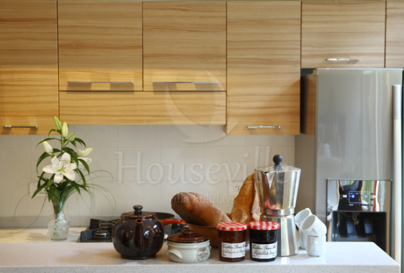 - На кухне: газовая плита с 5 конфорками, духовка, посудомоечная машина, микроволновая печь, тостер, чайник и кофеварка;